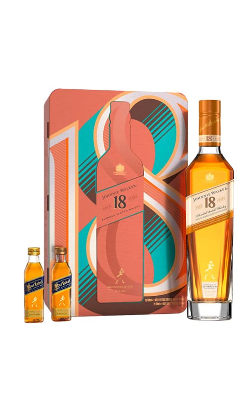 Johnnie Walker 18 YO + 2x5cl Set regalo miniatura con astuccio in metallo