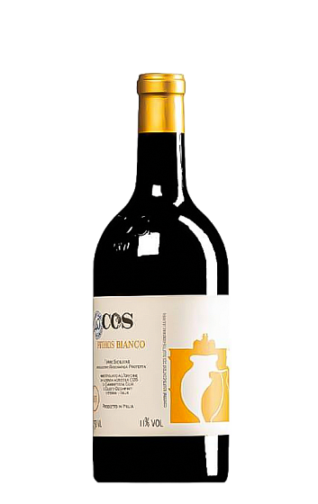 COS Pithos Bianco Anfora è un vino arancione naturale fatto con l'uva Grecanino, che ha un colore dorato. Per ottenere il suo caratteristico aspetto arancione e un po' torbido, viene fatto fermentare spontaneamente con le bucce in anfore di terracotta, una delle cose più uniche di questa cantina nel sud-est della Sicilia. L'invecchiamento, che avviene sempre negli stessi recipienti della fermentazione, dura circa 7 mesi. Il risultato è un vino molto artigianale e con una grande personalità, che regala aromi di miele e frutta a nocciolo, con un fondo leggermente amaro.