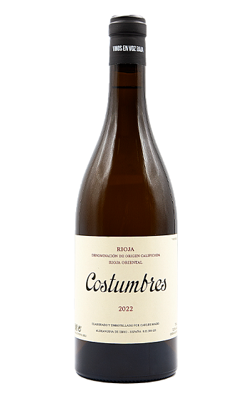 The white version of Costumbres is a co-fermentation of Viura, 30% Pasera and 20% Garnacha Roya from vineyards in Aldeanueva, Alfaro, Autol and Rincón de Soto. Leesy, elegant, waxy and textured, it's a low intervention style with very little added sulphites, waft of tarragon and aniseed and bright pear and citrus fruit. 2024-28.