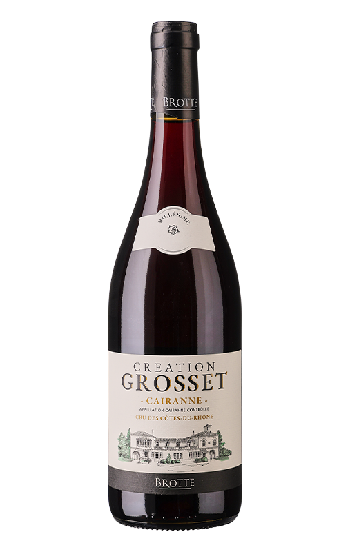 Il Création Grosset Cairanne è fatto con un mix di uve Garnacha, Monastrell, Syrah e Cariñena che vengono da terreni sabbiosi e ricoperti di ghiaia. Nel 2016, dopo otto anni di studi, la denominazione "village" Cairanne è stata promossa allo status di "cru" all'interno della Côtes du Rhône. Un passo avanti nella qualità e nel riconoscimento di questi vini. Appartiene alla collezione privata della famiglia Brotte.
