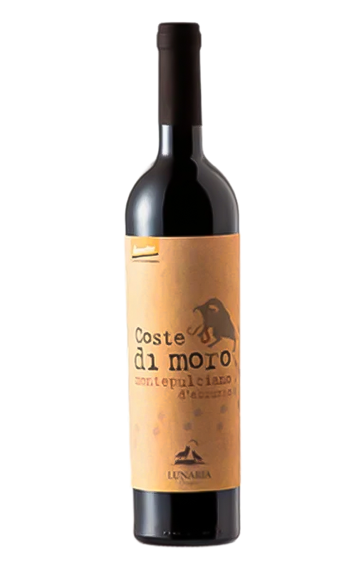Biologico e biodinamico, il Lunaria Coste di Moro Montepulciano è un vino rosso dove il vitigno principale dell'Abruzzo mostra tutta la sua purezza, grazie alla lavorazione senza trucchi, affinato solo in cemento e in bottiglia. Caldo, morbido, intenso e pieno di frutta rossa e nera con il tipico finale di mandorla.