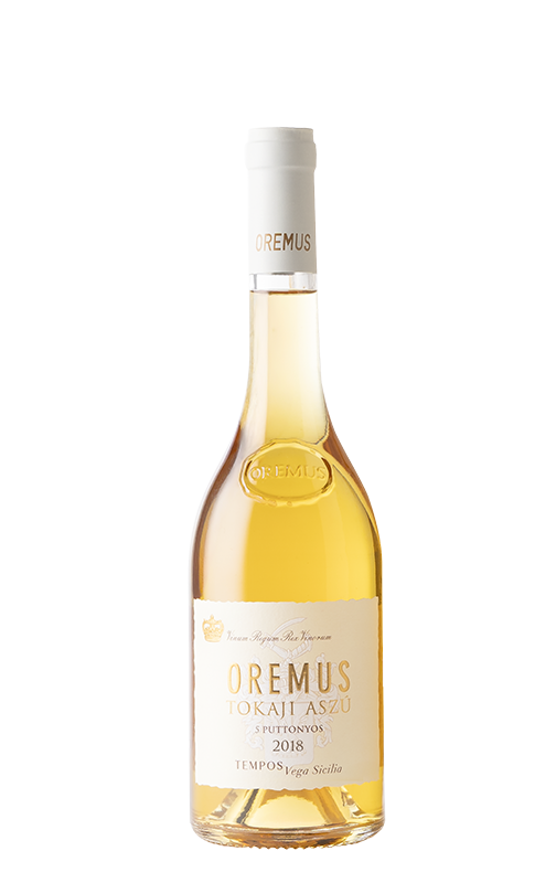Oremus Aszú 5 Puttonyos è un vino che affascina in tanti modi. Viene da vigneti che fanno parte del patrimonio mondiale dell'Unesco e viene fatto invecchiare in gallerie sotterranee vecchie di secoli, ed è considerato uno dei migliori al mondo. I suoi 5 puttonyos indicano che si tratta di un vino di dolcezza media ( il minimo della cantina è 3 e il massimo 6). Il termine puttonyos ( cesti in ungherese) si riferisce alla quantità di uva aszú, cioè con botrite, che da centinaia di anni viene aggiunta al mosto base nella produzione dei tokaji. Ciascuno di essi equivale a 25 chilogrammi di uva selezionata una ad una e più ceste ci sono, più dolce sarà il vino finale. Questa annata 2018 presenta un apporto di funghi inferiore al solito nella regione, mantenendo le sue fragranze floreali e fruttate e il perfetto equilibrio tra acidità e dolcezza. Presentato in bottiglia da 50 centilitri.