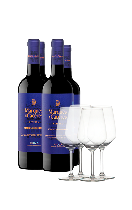 Pack Marqués de Cáceres Reserva 2020 (x4) con 4 calici