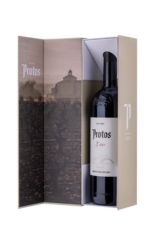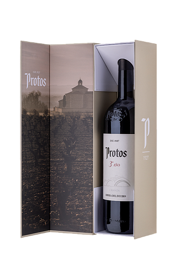 Il perfetto simbolo di Protos e uno dei suoi vini più venduti. Questo Crianza è un fedele riflesso del terroir della Ribera del Duero. Al naso è super aromatico, e in bocca è potente, avvolgente, saporito e con tannini maturi. Viene venduto in bottiglie da 1,5 litri con astuccio.