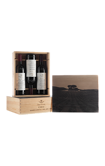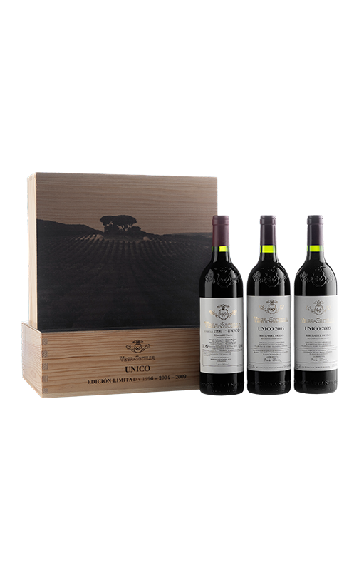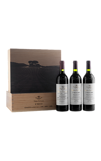 Unico è il grande vino di Vega Sicilia, un rosso leggendario che ogni appassionato dovrebbe provare almeno una volta nella vita. Perfetto da conservare, che in condizioni ottimali può durare fino a 60 anni, mostra una complessità "infinita" ad ogni sorso, non a caso è uno dei vini con il più lungo periodo di invecchiamento al mondo. Questa edizione limitata, presentata in un astuccio di legno, riunisce tre fantastiche annate con cui poter godere di una degustazione verticale di alto livello di un vino mitico e quasi eterno.